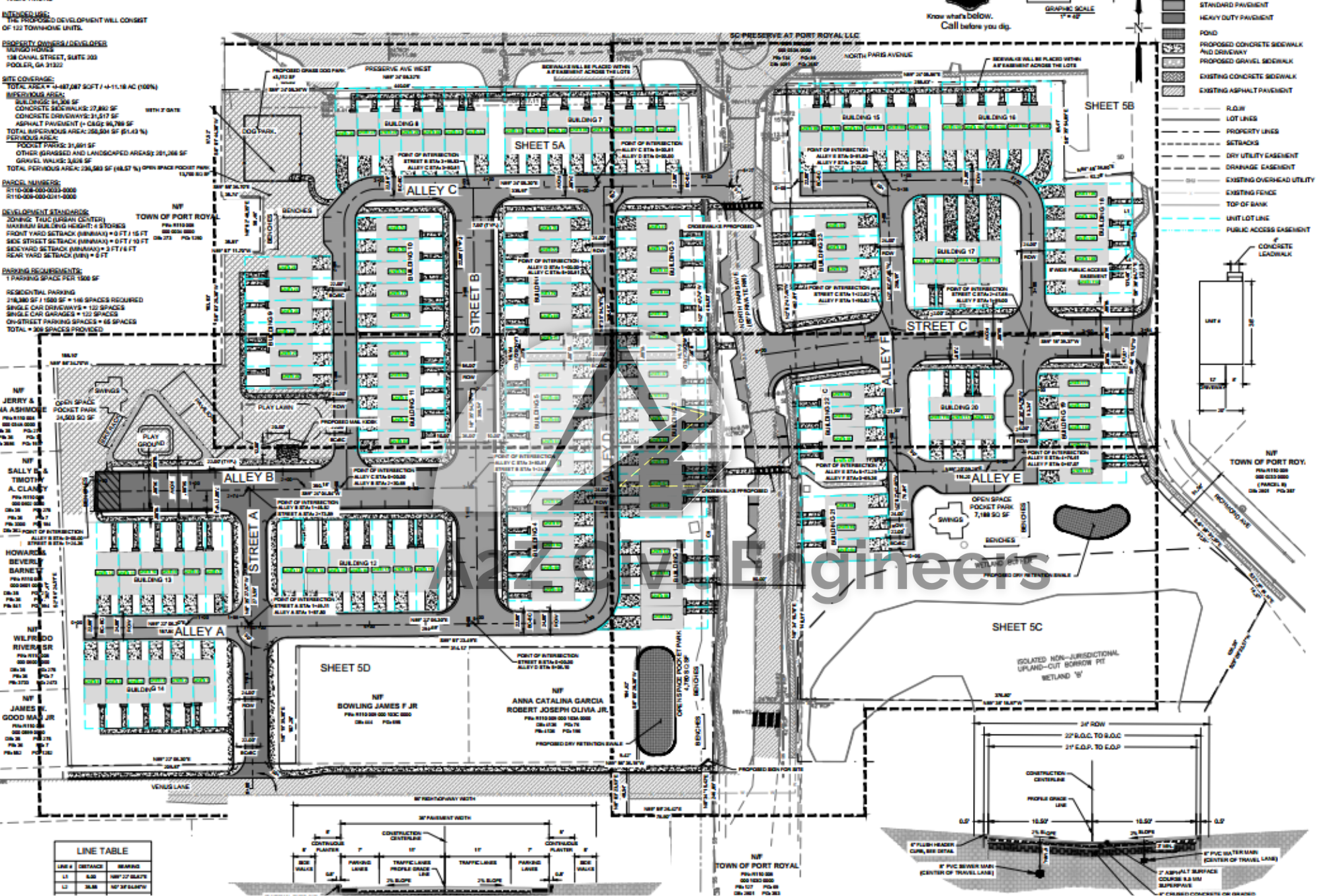 Proposed Lots: 122 Lots, Design: Site Construction Plan.